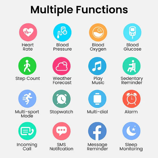 • Smart Notifications: Stay connected with alert notifications for calls, messages, and apps directly on your wrist, ensuring you're always in the loop even when on the go.