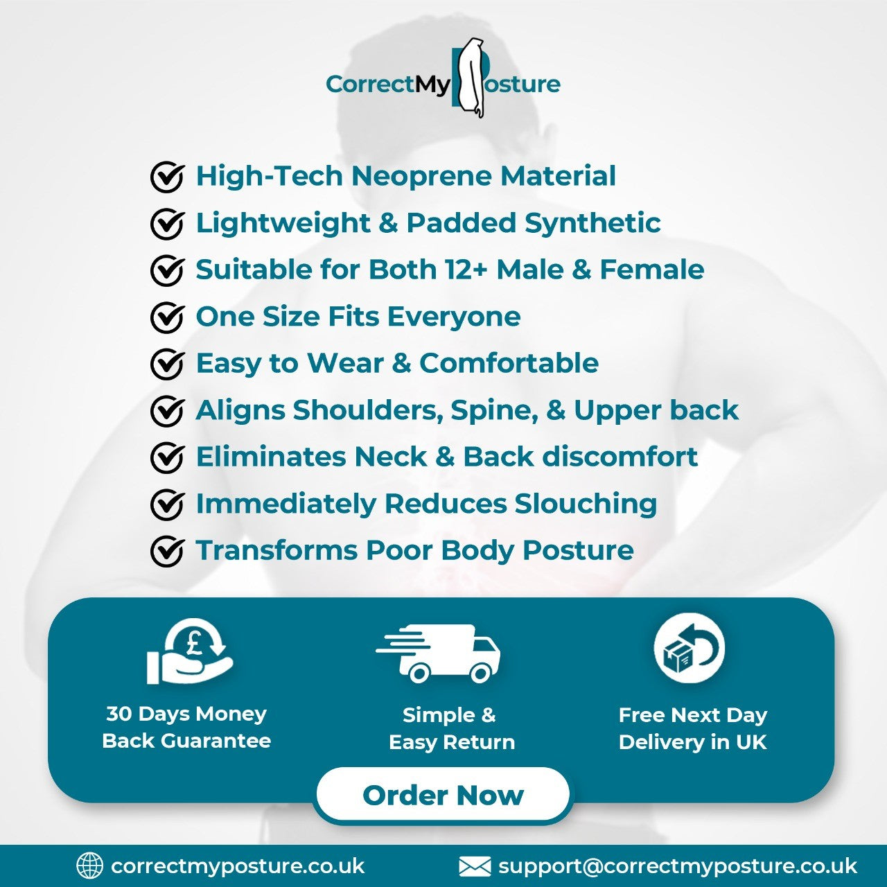 👟 Take your first step toward a healthier lifestyle today with our posture corrector. Experience the difference in comfort, poise, and confidence!