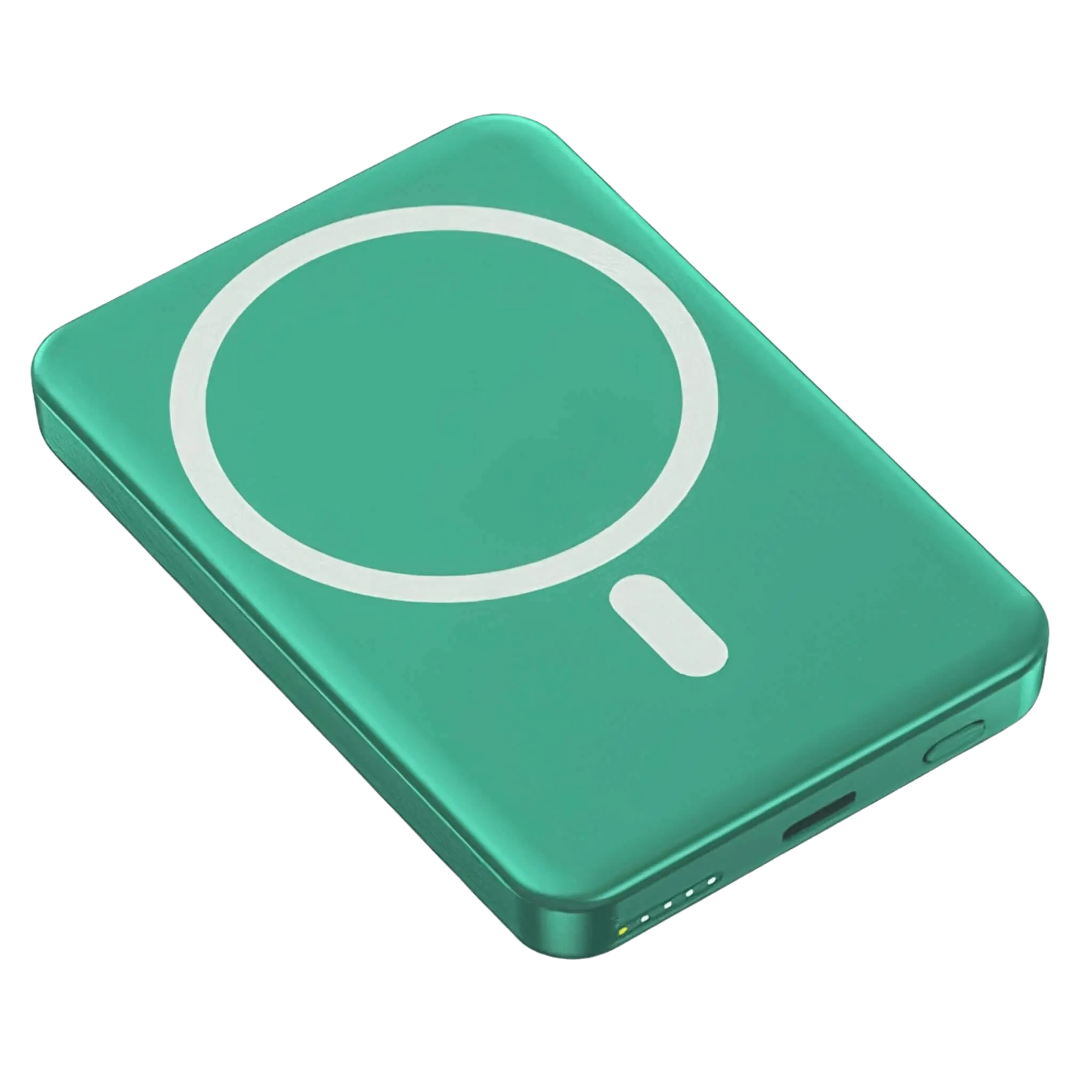 "10,000mAh MagSafe power bank for iPhone, sleek design, wireless charging, vibrant colors, portable, lightweight."
